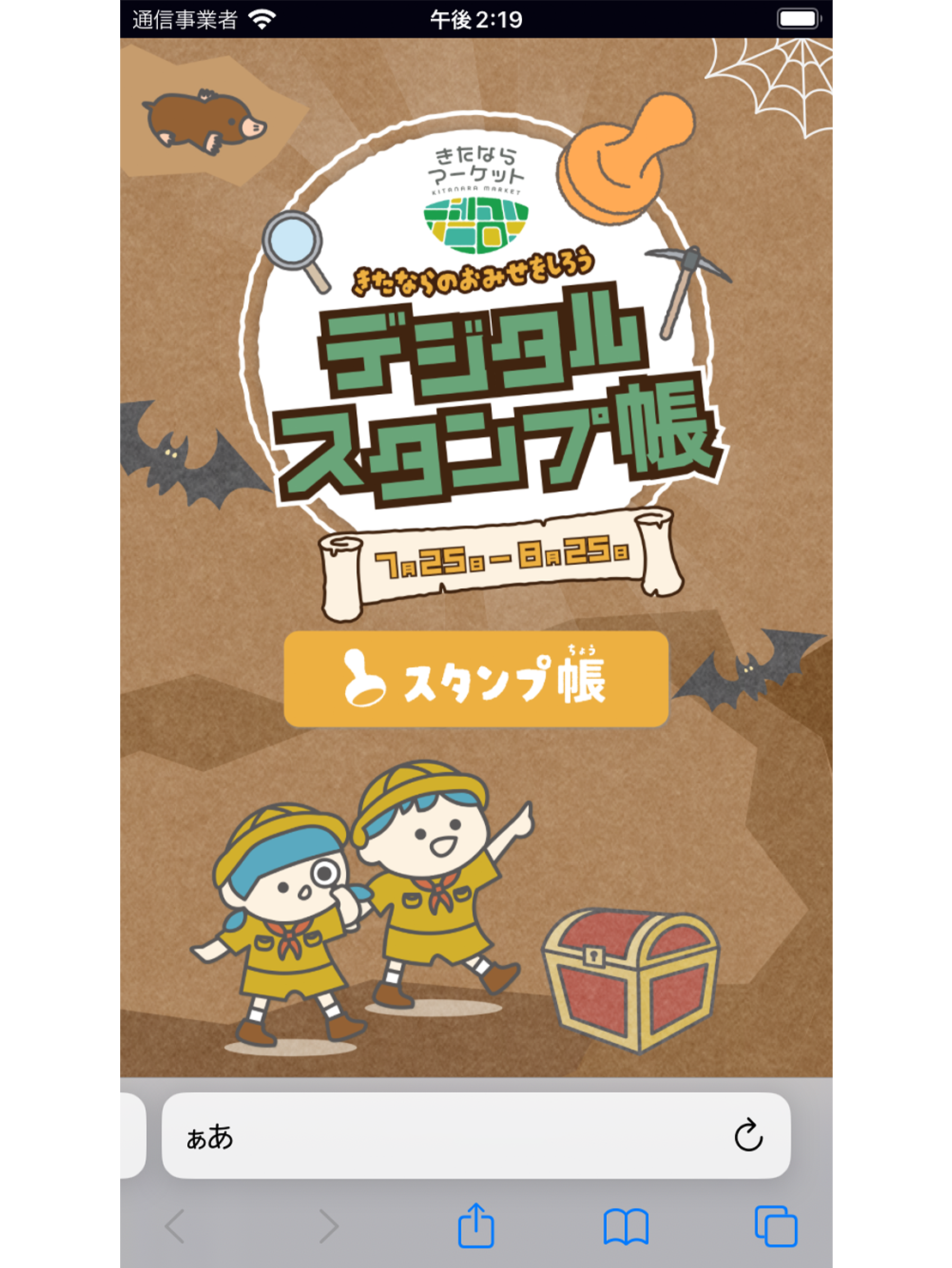 北習志野駅周辺の4つの商店会(JuJuきたなら/エビスきたなら/ビアーレきたなら/エールきたなら)を巡るデジタルスタンプラリー「きたならたんけんたい」を制作しました。
