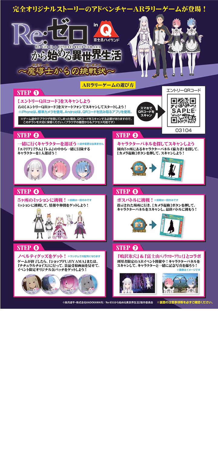アドベンチャーARラリー「Re:ゼロから始める異世界生活 ~魔導士からの挑戦状~」 in 富士急ハイランド